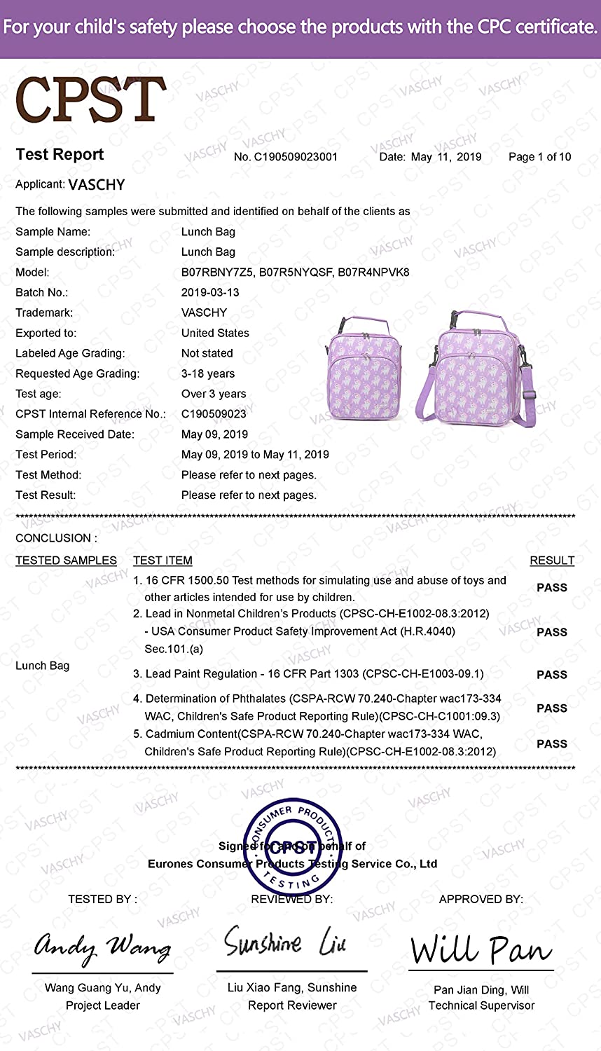 - ♥SIX-MONTHY-WARRANY: With 6 months’ warranty, you can buy Vaschy’s children lunch bag with confidence. Vaschy offers you and your family a uiqure lunch bag to have fresh and healthy food.